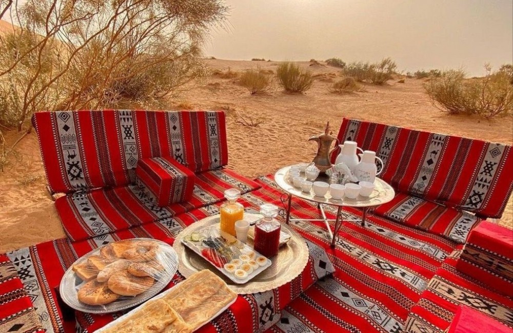 Delicious Dinner: Enjoy a traditional Arabic BBQ dinner under the starlit sky.